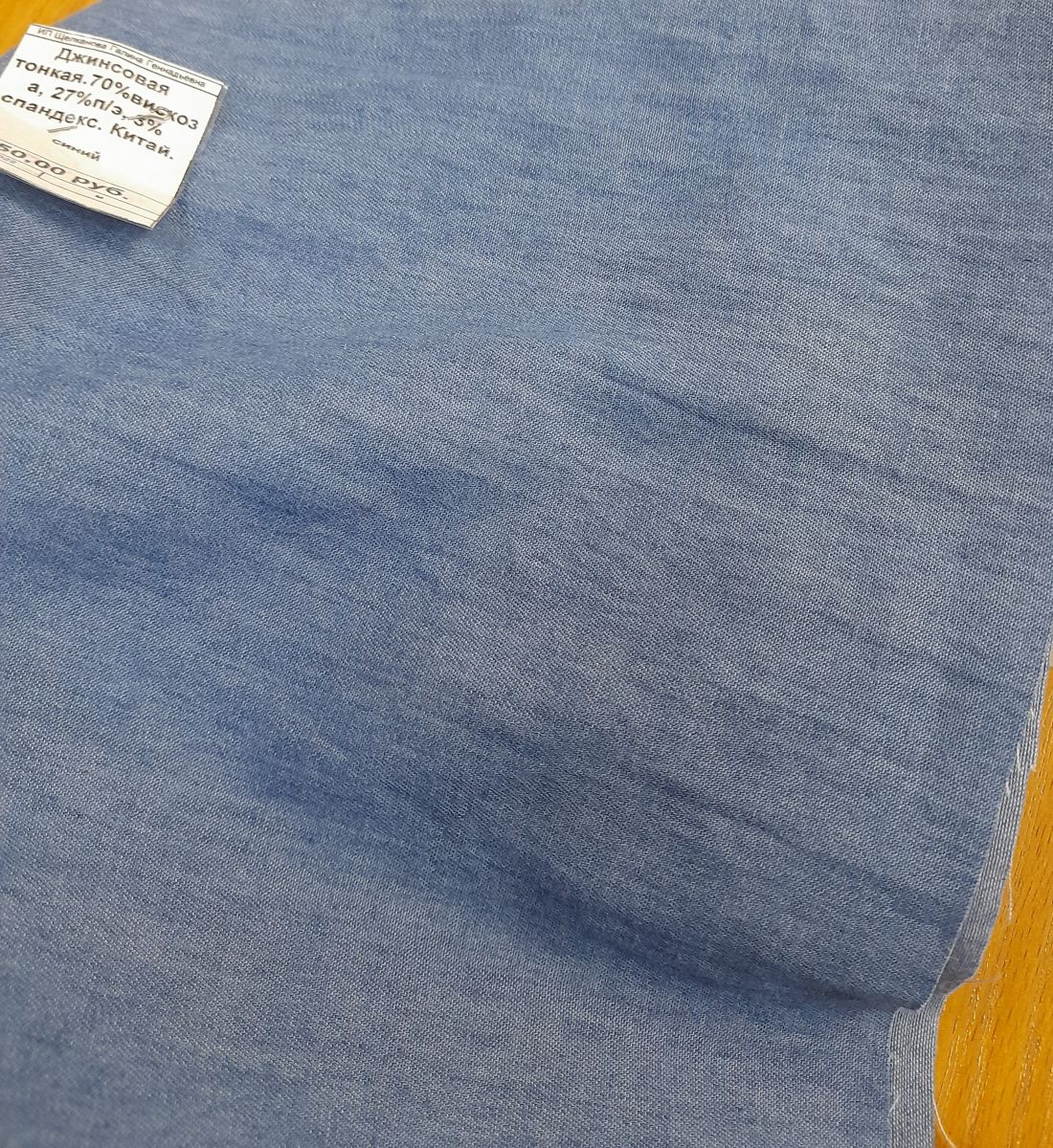 Джинсовая тонкая.70%хлопок, 27%п/э, 3% спандекс. Китай.