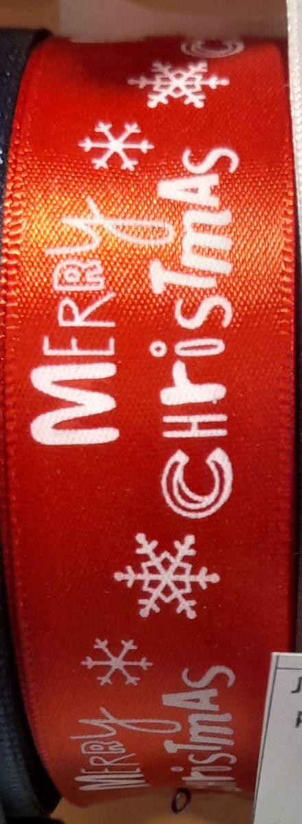Лента атласная с рисунком 25 мм. «Merry Christmas»