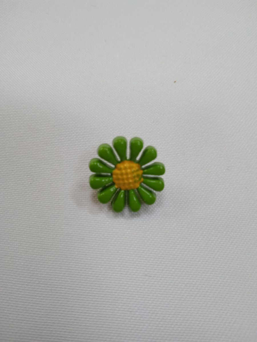Пуговицы1279 - 13 мм.зеленый цветочек с желтой серединкой