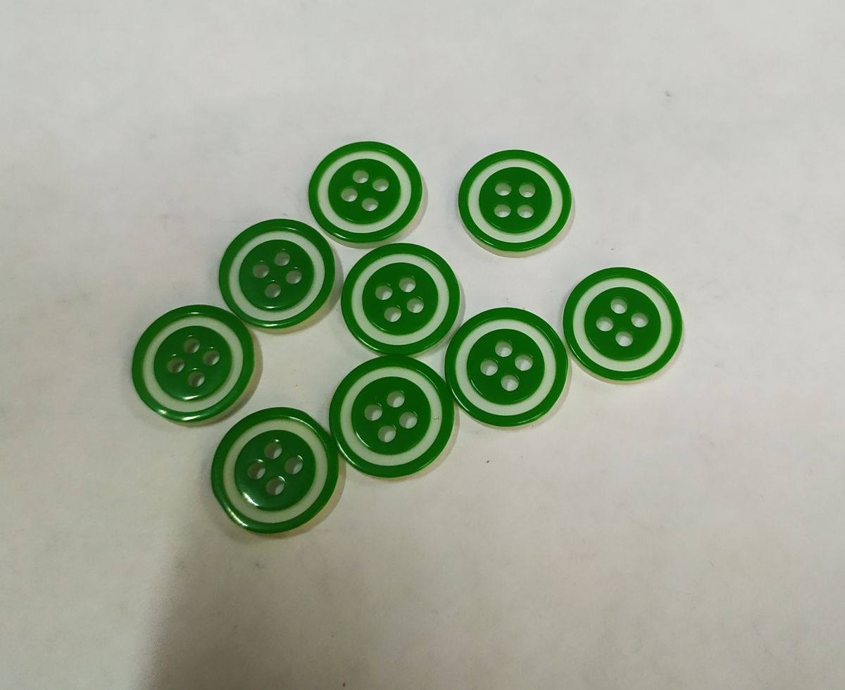 Пуговицы1495 13мм зеленый белый ободок